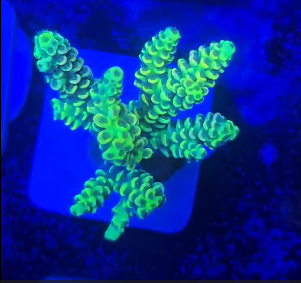 A Acropora tenuis é um dos corais SPS mais desejados no aquarismo marinho, conhecida por sua estrutura ramificada delicada, crescimento harmonioso e cores intensas, que podem variar entre tons de azul, roxo, verde, rosa e amarelo, dependendo da iluminação e dos parâmetros da água.